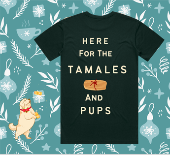 Here For The Tamales & Pups Tee - Small is backordered and will ship as soon as it is back in stock.