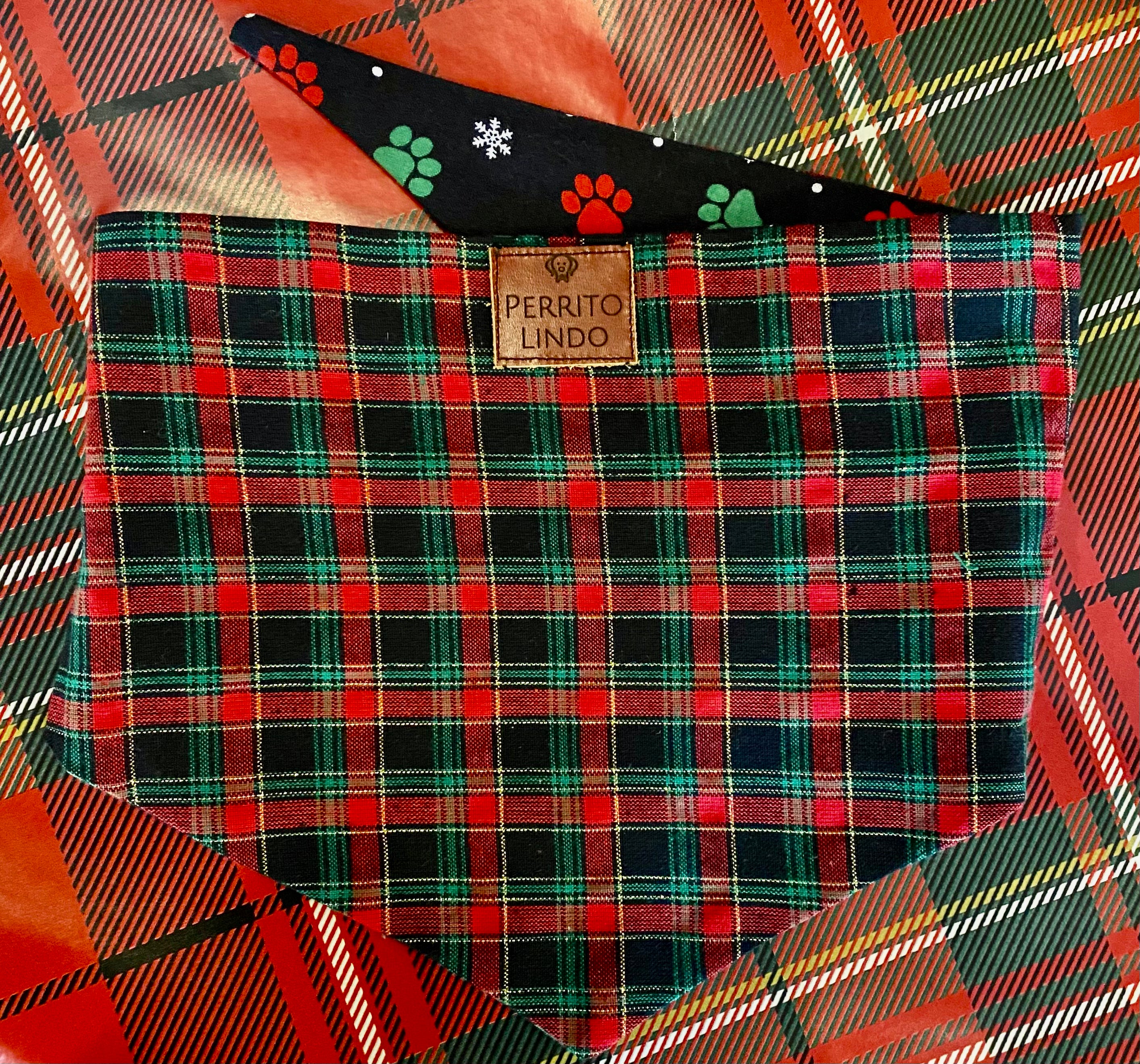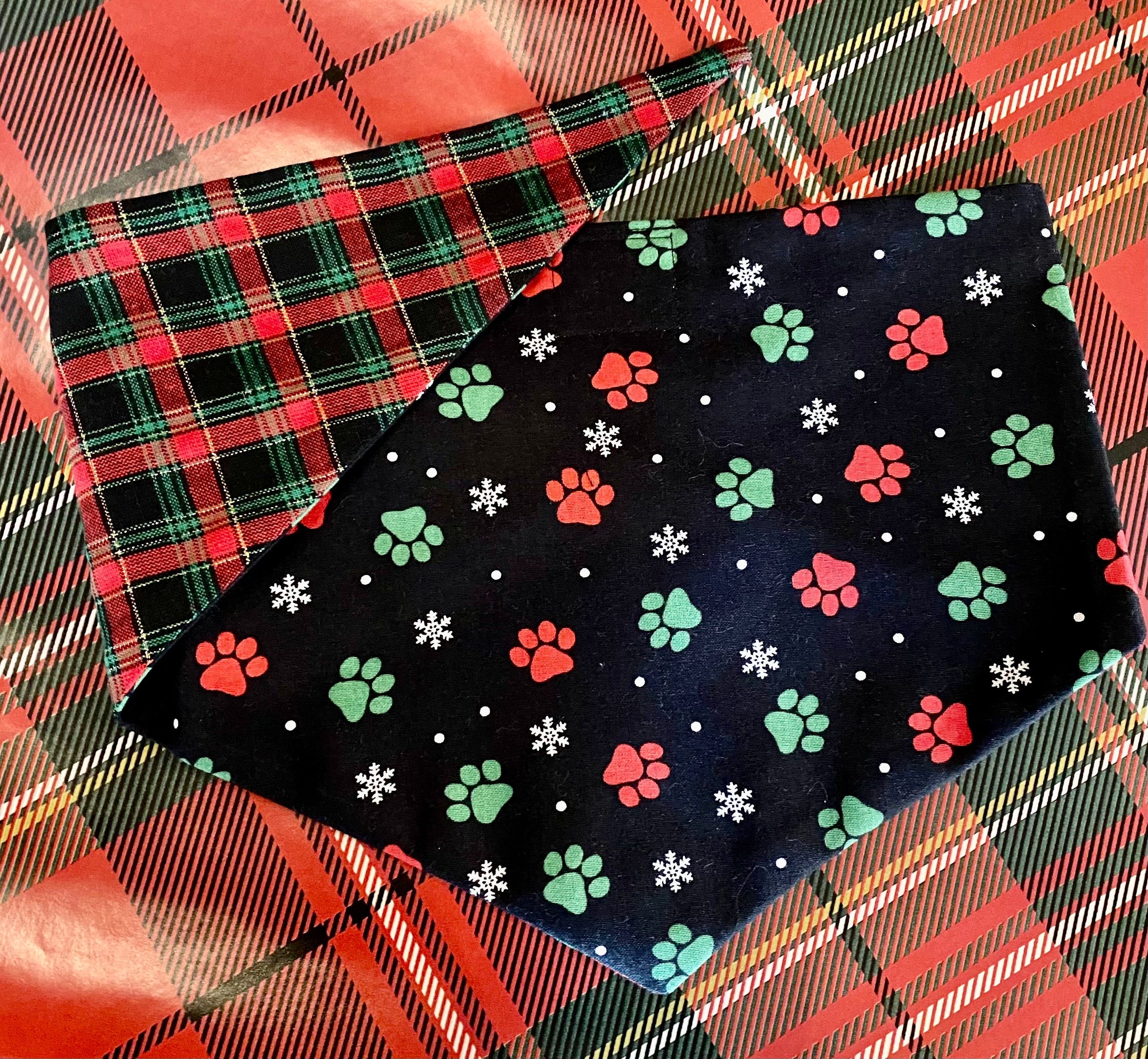 Christmas Paws Reversible Plaid Bandana